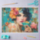 Turn up the drama and the color with this dazzling decoupage tissue paper design featuring a retro glam woman holding a vibrant blue martini. Adorned in oversized floral accessories, golden rings, and a sultry stare, this piece adds the perfect mix of sass and sophistication to your bar-themed crafts, party trays, journal pages, and upscale gift wrapping.