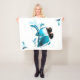 Blue Masked Lovebirds Blanket with swirl and feather designs.