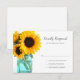 Sunflower wedding RSVP response cards. Design features yellow sunflowers in a blue mason jar on a white background.
