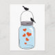 blue mason jar with red hearts and birds postcard