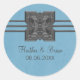 Regal and elegant Medallion Border Wedding Stickers featuring a digital art metallic medallion and a three stripe border on a light blue background. These bold and stylish wedding stickers are perfect for an equally bold and stylish wedding and are great for favors or envelope seals. Easy to customize, simply add the details of your wedding in the text fields provided. Click on "Customize It" to find additional personalization options such as changing fonts or text size.