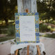 Blue Mediterranean citrus wedding welcome sign