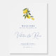 Blue Mediterranean citrus wedding welcome sign