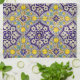 Hand painted traditional blue and yellow tiles from the Mediterranean. Pattern of perfection. Azulejo blue and yellow floral blossom tile artwork. The perfect decorative design, ideal gift for any occasion. A beautiful Mediterranean Summer design depicting yellow flowers with their greenery and blossoms against a blue and white vintage pattern.