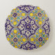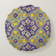 Blue Mediterranean Pattern Yellow Blossoms Round Pillow