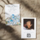 Beautiful Mediterranean wedding Save the Date featuring a beautiful watercolor hillside and coast landscape in blue and white. Add your photo and wedding website QR code to the reverse.
