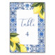 Blue Mediterranean Tile and citrus table number