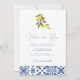 Blue Mediterranean Tile and citrus wedding Invita Invitation