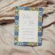 Blue Mediterranean Tile and citrus wedding Invitation