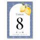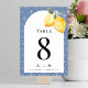 Blue Mediterranean Tile Italian Lemons Wedding Table Number