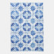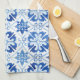Blue and white Mediterranean tile kitchen towels. Beautiful blue and white Mediterranean tile background. You can add text to personalize.