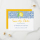 Blue Mediterranean Tile Watercolor Lemon Wedding Save The Date