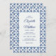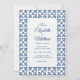 Plain white envelopes are included with paper invitations and will come to fit the invitation size you select. If you don’t need the envelopes, you may choose to not receive them by selecting the dropdown below "Envelopes" and choosing "None." If you’d like to have a design on your envelopes, you can browse all of these available envelopes to find the design that complements your Blue Mediterranean Tiles Wedding Invitation.