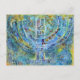 The original artwork for this menorah is a mixed-media painting created with acrylic paint, modeling paste, and paper by contemporary Jewish artist Meredith Gould.