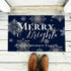 Blue Merry and Bright Snowflakes Personalized Doormat