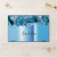 Modern personalized laptop skin design featuring glittery brush strokes in shades of blue and teal and sparkles on a light blue metallic background. The text is fully customizable. To change it use the Personalize option. For more changes, such as changes to the font, font color or text layout, use the Edit design tool option.