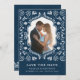 Celebrate your love with this rustic Blue Mexican-themed wedding Save the Date Card featuring an intricate floral design. Perfect for a boho-inspired wedding. Matching items in our store Cava Party Designs.