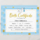 Hand over our Blue Milestone Certificate Baby Birth Certificate Award and let the celebration begin!