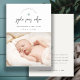 Blue Minimal Heart Script Photo Birth Announcement