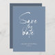 Modern periwinkle blue minimalist bold save the date script invitation.