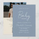 Blue Minimalist Photo QR Code Baby Shower Invitation