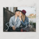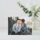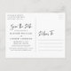 Trendy, stylish save the date postcard displaying your favorite engagement photo with "Save the Date" in a light blue, hand-lettered script. Personalize the front of the postcard by adding your names, wedding date, & location. The back of the modern save the date postcard features your return address, names, wedding date & location, wedding website, etc.