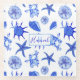 Blue mixed seashell pattern-custom monogram-name glass coaster