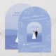 Yes, you can print on the back of your invitation for free! Most designs already have a corresponding design on the back that can be personalized using the Design Tool and going to Layers. This is a great way to communicate more information or further personalize your Blue Modern Arch Botanical Wedding Invitation. The option is really up to you.