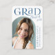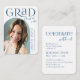 Simple mini size graduation announcement features modern typography and arch shape photo in teal blue, elegant and fun, Custom it with your own photo and grad party information.