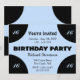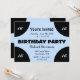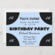 Light blue center on black birthday party invite. Blue and black gives this a modern look. Add the age or leave it blank - Complete with RSVP