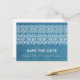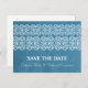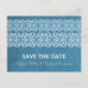 Elegant and sophisticated Modern Bohemian Save the Date Postcard featuring a unique swirl border and a vintage paper look background in blue. This stylish postcard is perfect for announcing your Asian or bohemian themed wedding. Easy to customize, simply add your wedding details in the text fields provided. Click "Customize It" to find more personalization options.