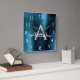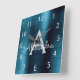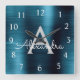 Blue Modern Elegant Metallic Monogram Name Square Wall Clock