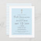 Celebrate a special milestone in your child's spiritual journey with our First Holy Communion invitations. Featuring a clean white border and a pastel blue background, these invitations are perfect for any religious event. The gold-effect cross adds a touch of elegance, while the stripe reverse adds a pop of color.