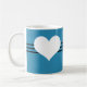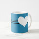 Sweet and charming Modern Heart Mug featuring a light blue background and a cute heart and striped border. This cute and girly mug is perfect for enjoying your favorite hot beverage! Customize with the text of your choosing. Click on "Customize" to find additional personalization options.