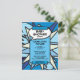 A baby boy blue fun, cool and trendy baby shower or sprinkle invitation that puts the wham, zap, pow into any superhero mom to be or couples celebration event. Designed by Thisisnotme©