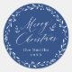 Blue Modern script Merry Christmas Holiday Gift Classic Round Sticker