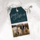 Blue Modern Simple Script Photo Merry Christmas Gift Tags feature a modern calligraphy message and your family photo.