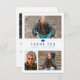 Modern typography design with 4 photos in front and back in blue and white, great personalized thank you card for graduation party.