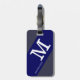 Personalized (name and initial) design of blue stripes with additional informations of the traveller. On your next adventures, do not worry about losing your bags