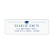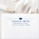 Modern typography design with graduation cap in blue and white, great personalized return address label for graduation party.