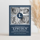 Blue Monogram Baby Boy Birth Announcement Card. This 4 photo birth announcement card has the perfect touch of masculine to announce the arrival of your baby boy. Personalize with photos of your baby, add all your own information and change colours and fonts according to your preference.