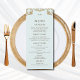 This personalized Baroque Christian Wedding Menu card is the perfect addition to your vintage-inspired, God-centered celebration. Featuring an ornate mocha-tone frame detail against a soft dusty blue background, this menu card exudes timeless elegance. The monogram of the couple's initials adds a personal touch, while the combination of modern and script fonts and a meaningful bible verse on the back brings a graceful, sophisticated style. Ideal for a Rococo Wedding or a religious regency-themed celebration, this vintage design brings a classic and refined touch to your event, making it a truly memorable part of your special day.