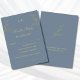 Personalize this minimalist christian wedding RSVP card featuring a delicate line drawing of an olive branch with olives and leaves, capturing a timeless botanical elegance. Set against a stylish dusty blue background, the design combines graceful calligraphy script and clean typography fonts for a refined and simple look. The couple’s monogram is thoughtfully included on the front and a heartfelt bible verse on the back, adding a personalized and sophisticated touch. Perfect as a response card, this elegant design will complement your God-centered, minimalist wedding suite with understated beauty.