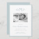 Announce the arrival of your precious baby boy with this Personalized Minimalist Baby Boy Birth Announcement. Featuring a sleek, minimalist design with a custom monogram and a special photo of your newborn, this card is perfect for sharing the joyful news with family and friends. The elegant layout includes your baby's full name, birth date, weight, length, and the proud parents' names for a personalized touch.