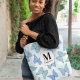 Carry your essentials in style with this modern monogram tote bag featuring blue butterflies and a botanical nature-inspired design. This cute and trendy tote is fully customizable with your name and initial, making it a perfect choice for personalized tote bags. Whether for everyday use or as a thoughtful gift, this bag combines functionality with elegant natural charm.