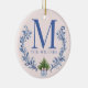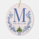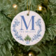 Blue Monogram Crest with Christmas Tree Ceramic Ornament
