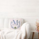 Blue Monogram Crest with Christmas Tree Throw Pillow