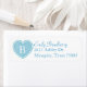 Pretty wedding return address labels, done in white, with a blue heart, on the left side, with a white one letter monogram. Personalize the blue text and monogram, to suit your needs.