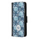 Blue Monogram Floral Pattern iPhone Wallet Case