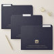 Elevate your professional image with our Blue Monogram Folders. Featuring a brushed gold monogram initial alongside your company name and information, these folders exude sophistication and organization. The elegant design stands out against a rich blue leather print background, making them essential accessories for consultants and consulting firms. Keep your important documents, presentations, and materials neatly organized while showcasing your brand's elegance and attention to detail. Our folders blend functionality with a touch of luxury, perfect for making a lasting impression in meetings and presentations.